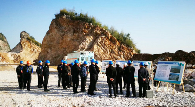 2017年12月18日下午,公安部三局马维亚副局长、张国亮副处长在浙江省公安厅副厅长金伯中、治安总队总队长阮文广、副总队长程华、调研员周卫华、杭州市公安局特警支队支队长周郑、治安支队支队长张文根、副支队长王瑞理以及西湖区公安分局、双浦派出所等有关部门同志陪同下,在云开平台官网石龙山南侧废弃矿山治理工程项目部现场观摩了混装炸药装填、爆破一体化过程作业,并在项目部召开了混装炸药应用座谈会。