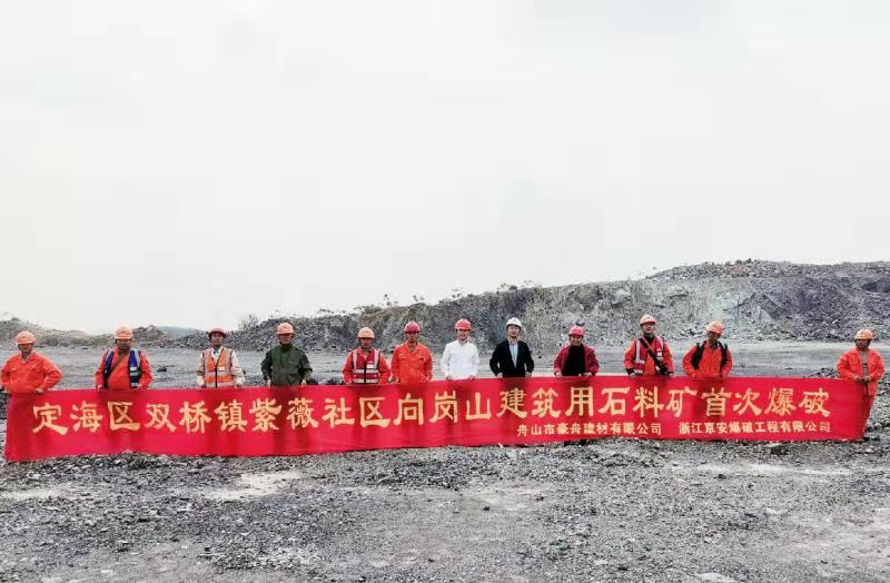 2019年11月13号9时,随着爆破指令的下达,舟山豪舟项目部建筑用石料矿山开采工程实现首次爆破,并获圆满完成。